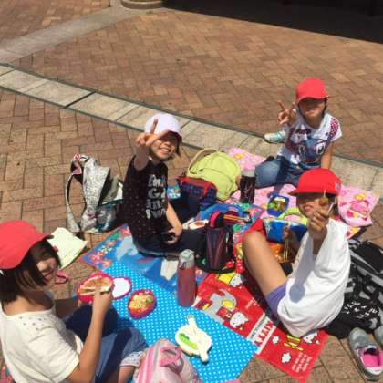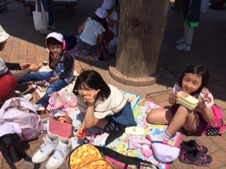 村野浄水場見学を終え、山田池公園に移動しました。待ちに待った昼食の時間です。