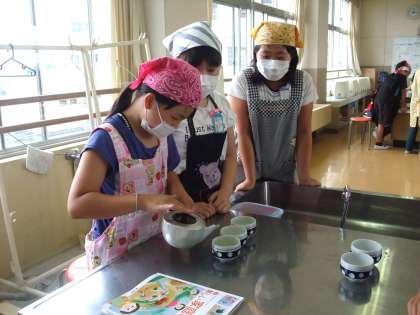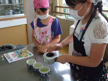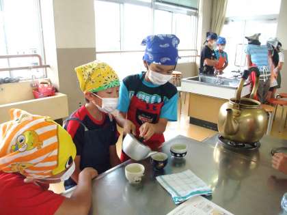 4時間目。家庭科室では5年生が、お茶の入れ方やいただき方を学習していました。