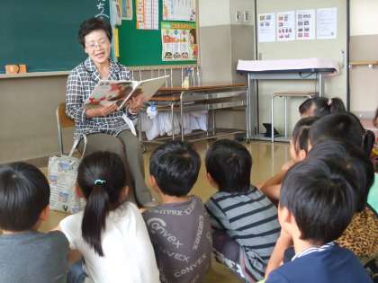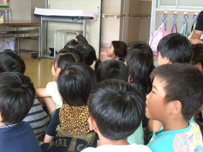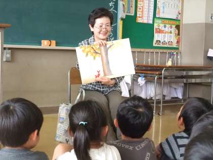 絵本の題名は、「さるかにがっせん」です。子どもたちは目をキラキラさせながら聞き入っていました。