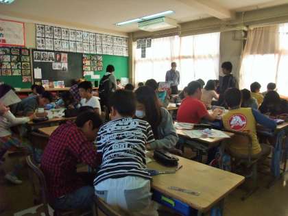 5時間目、深野中学校の先生方が授業参観に来られました。
