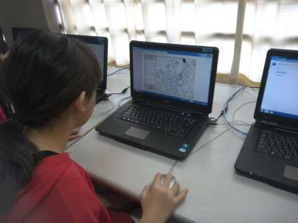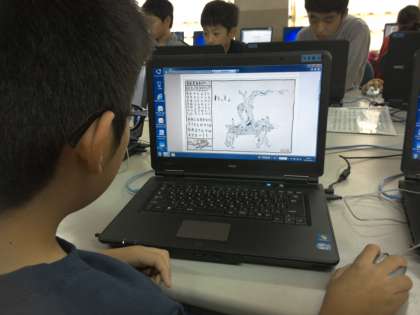 そして、コンピューター室で「鳥獣戯画制作キット」を使用して、オリジナルの鳥獣戯画を作成しました。