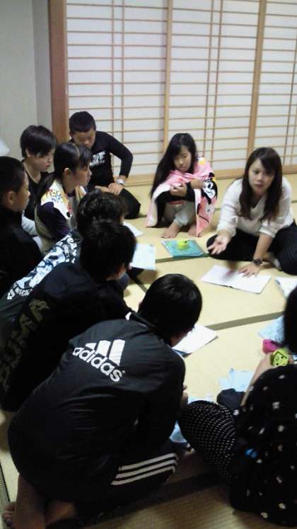 夕食、入浴、買い物、海ほたるの発光観察も終わり、就寝準備の時間になりました。