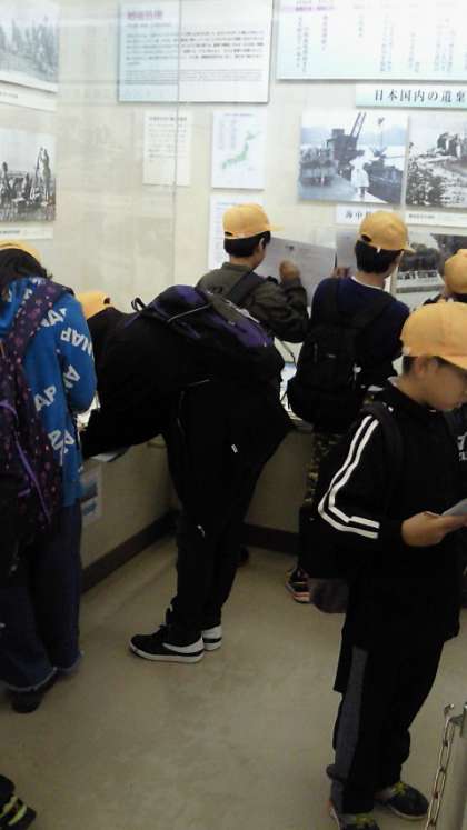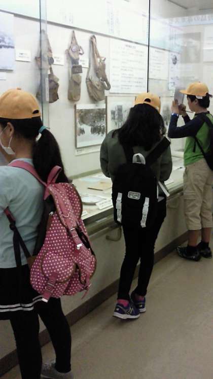 子どもたちは、ビデオを見たり、展示を見て学習しています。
