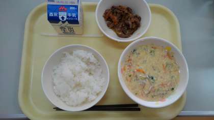 今日のメニューは、ごはん・たまごトック・プルコギ・牛乳でした。