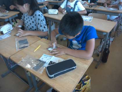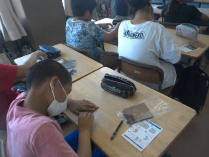 今回、子どもたちは古墳時代を中心に大量に作られていた滑石(かっせき)という柔らかい石を削って作っています。