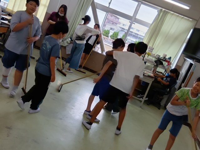 いつもとちがって朝から清掃をしました。土曜日の運動会で廊下や教室にたくさん砂が上がっていたので、みんなできれいにしてくれました。整った環境で1時間めをスタートすることができました。