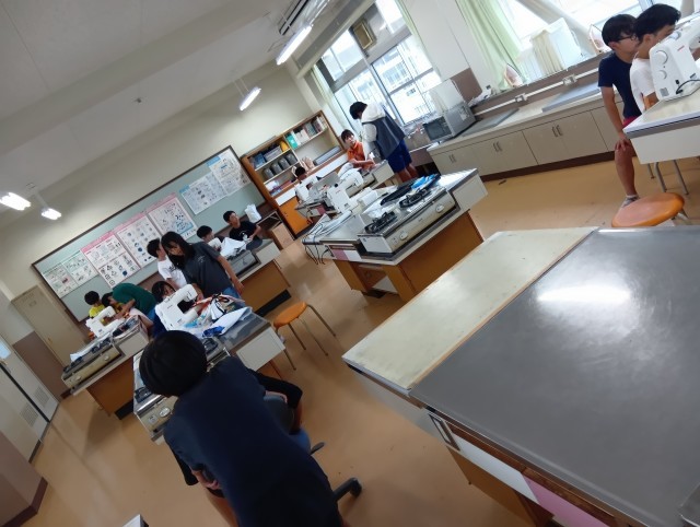 1組は家庭科。もう完成させた子が半分くらいいました。まだの子たちは完成に向けてがんばっていました。