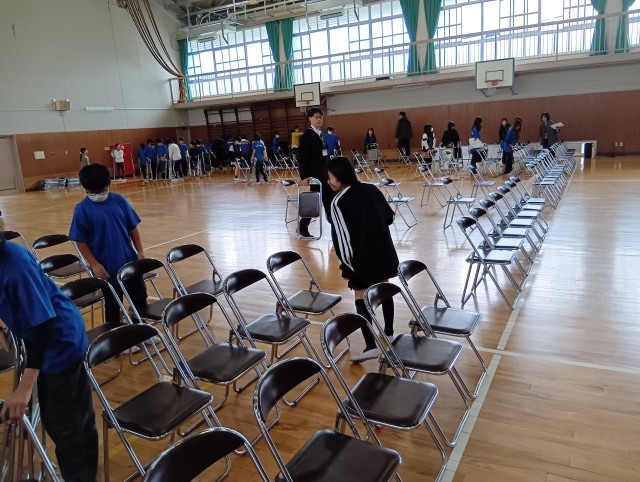 校内学習発表会が終わったあと、6年生が楽器、つくえ、いすを運んだり体育館をきれいにしてくれました。ありがとう。