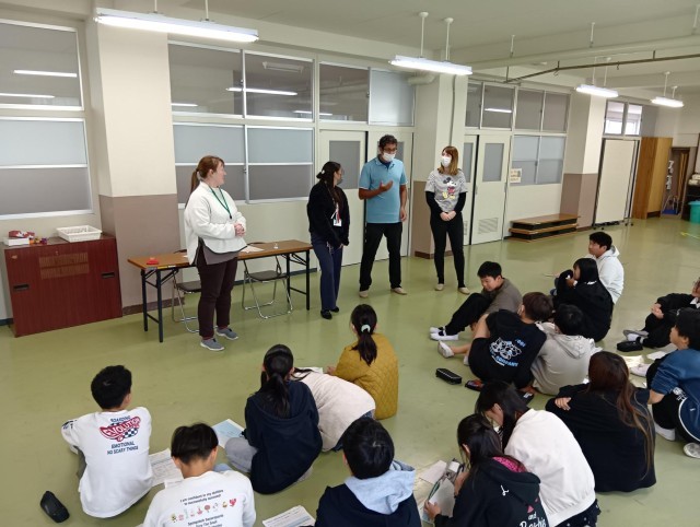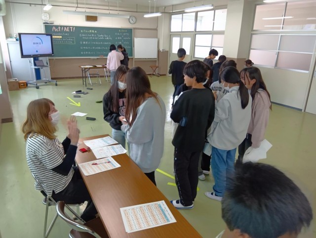 大東市のAETの先生が来てくれて、子どもたちの英語の活動に参加してくれました。子どもたちが英語でクイズを出して、先生たちが答えてくれました。