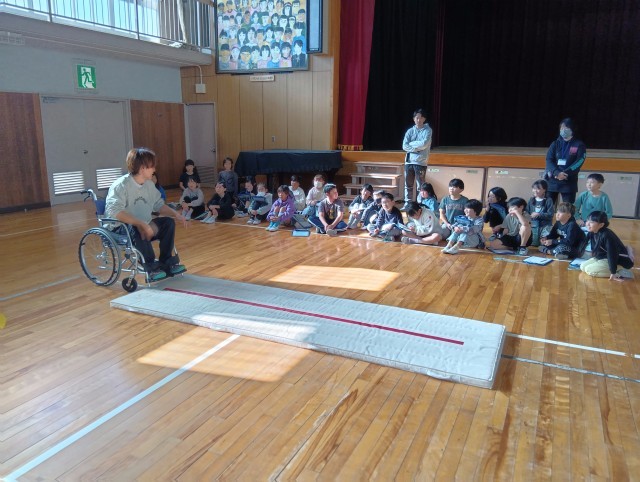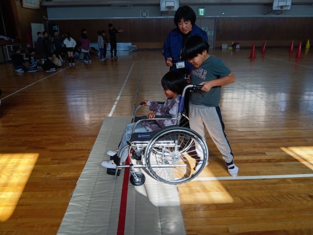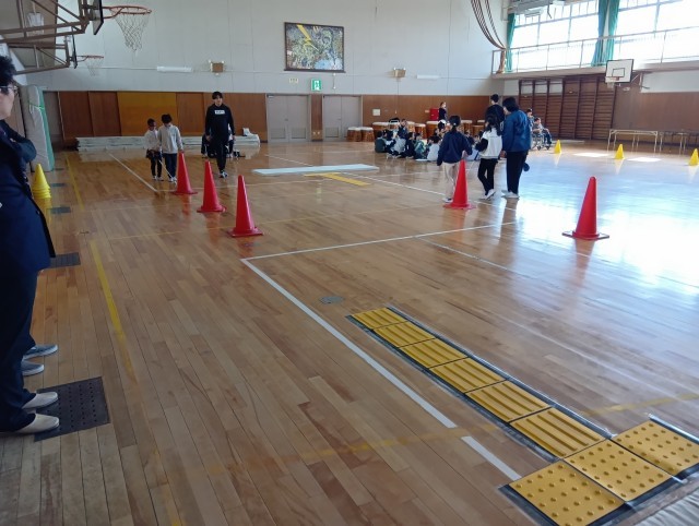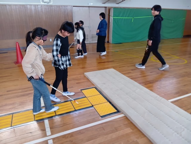 耳が聴こえない人と会話をする方法を学んだり、目の不自由な人の感じ方、サポートの仕方をアイマスクをして歩いて体験したり、車いすの人の感じ方、サポートの仕方を体験していました。