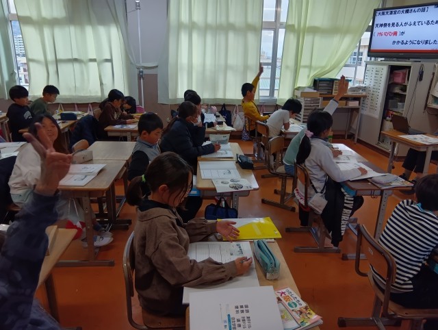 誰かがイベントを開催する際には、そこには必ずヒト・モノ・カネというコストがかかっています。という子どもたちがまだあまり触れていないかもしれない社会のしくみについて、天神祭を例に話をしていました。