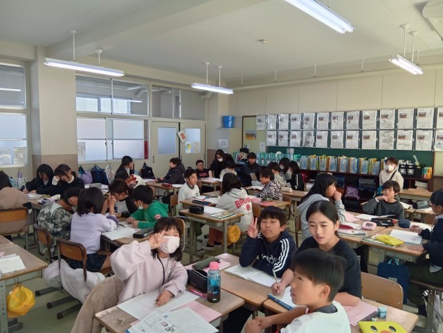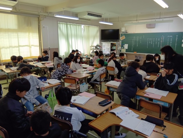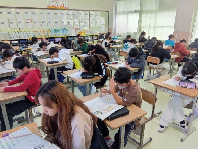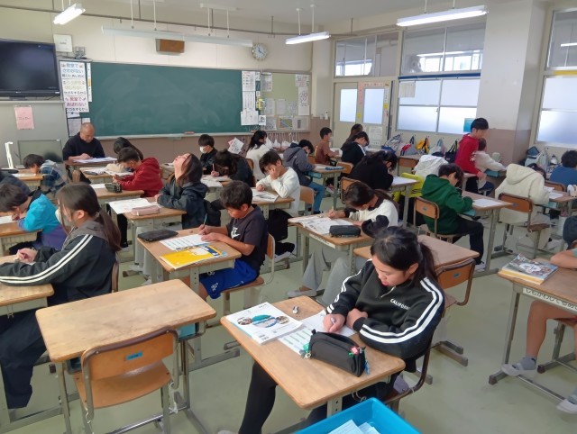 3組は社会の授業。テストの後、単元のまとめを自分で考えて書いていました。学んだことをどう生かすのかを書く欄もありますが、たくさん書けている子が多くてすごいなあと思いました。