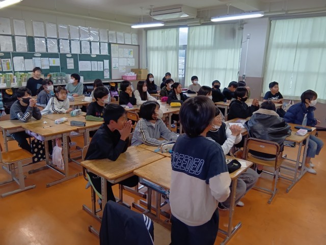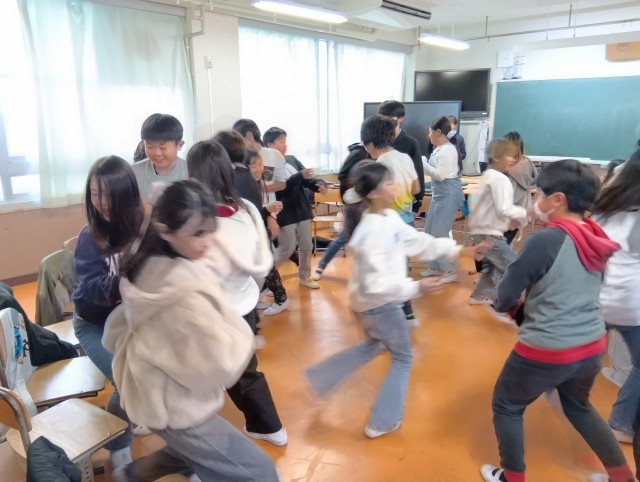 4時間めに学年で集まって外で遊んだ後の5時間め。