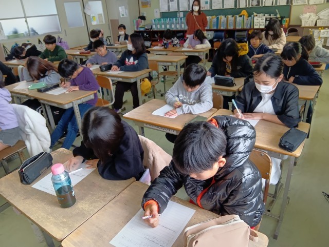 2組は障がい理解の授業で、大きな音に敏感な人について学んでいました。
