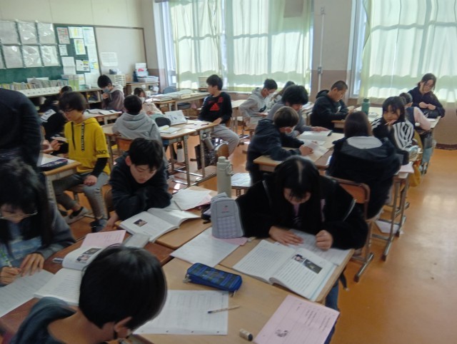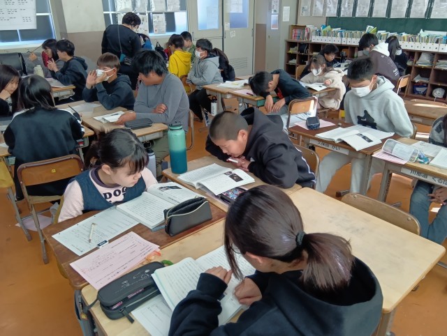 2組は国語。読み取った内容を伝え合っていました。
