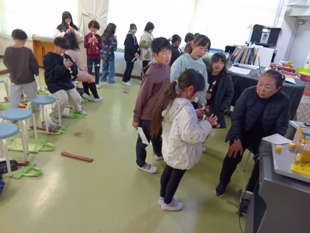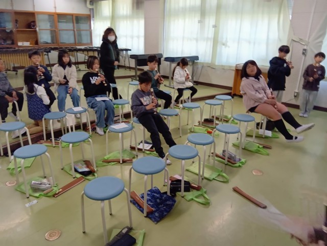 1組は音楽の授業。リコーダーのテストをがんばっていました。