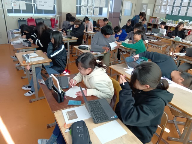 2組は図工。卒業に向けての課題に取り組み始めました。