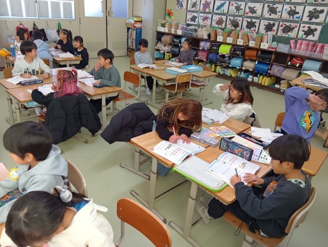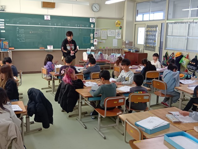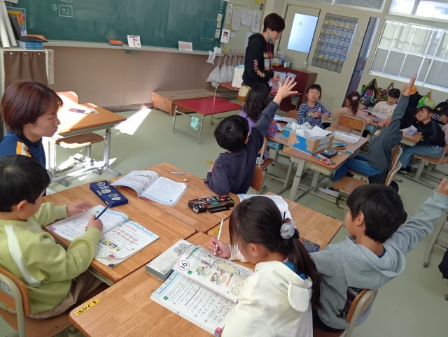 2組は数の大小や、等間隔で数える学習をしていました。どういう勉強をしているのかを教えてくれました。
