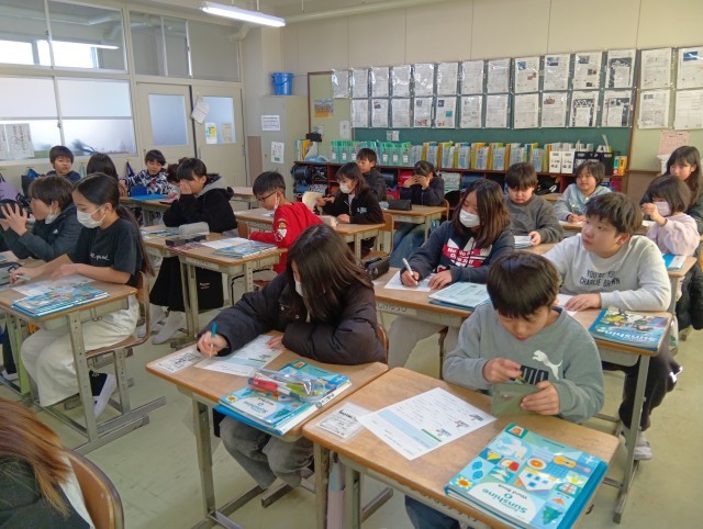 2組は英語の授業。けっこう長い文章の聞き取りをしていました。英単語をよく覚えているし、分からなくても「こうかな〜?」と類推する力があってすごいなあと思いました。