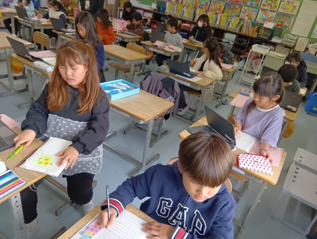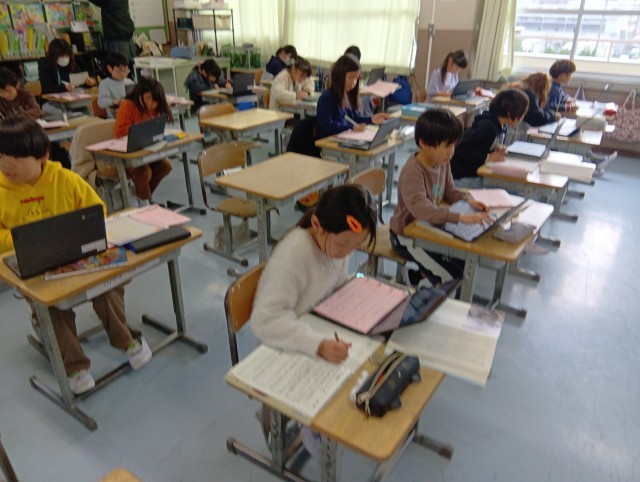 3組は国語。外来種についての説明文を読んだ後に、教科書で出てきた以外にはどんなものがあるのか、動物や植物を調べていました。みんな調べるものが違って興味深かったです。