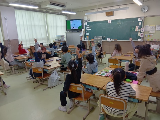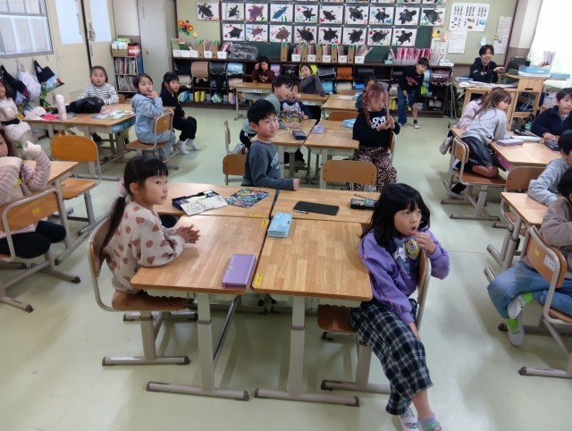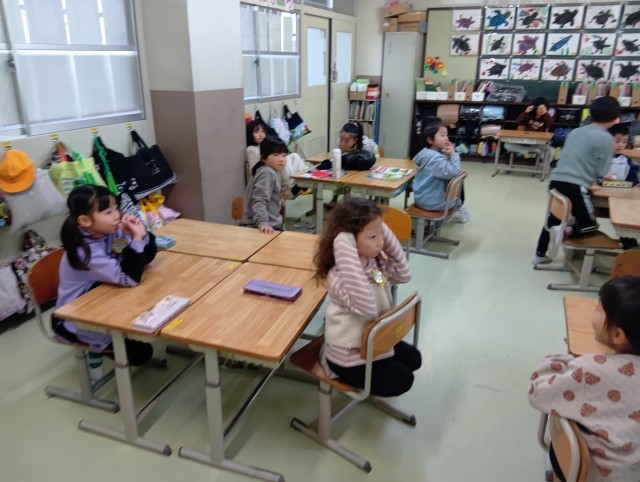2組は国語でカタカナの復習。クイズ形式で文字を読み取る学習でした。楽しみながら、繰り返し触れることで、覚えてほしいなと思います。