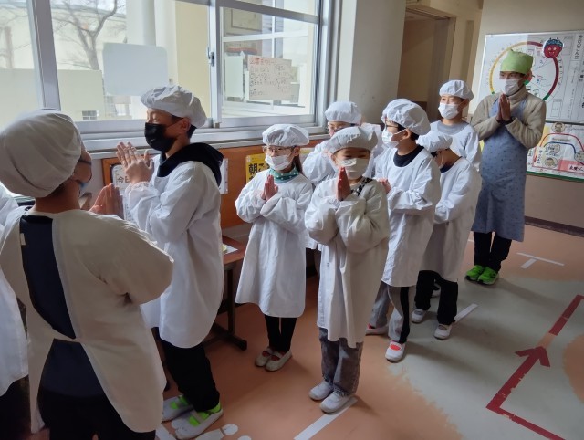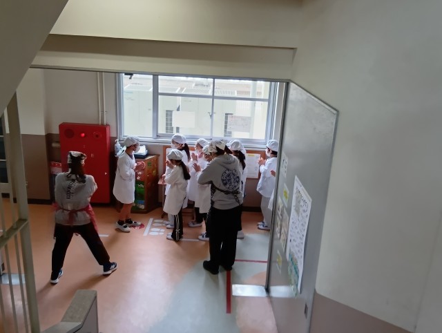 4年生給食の準備
