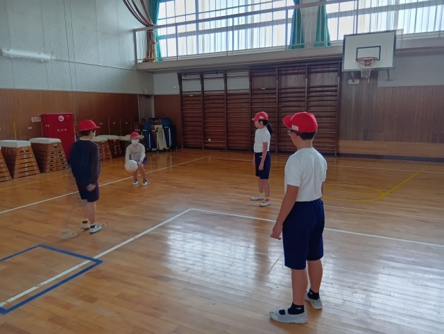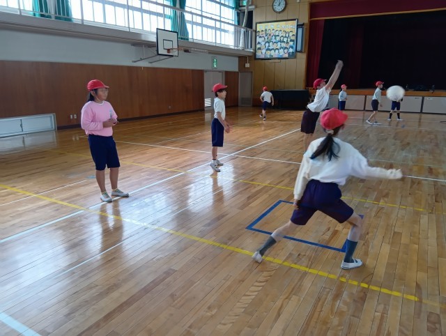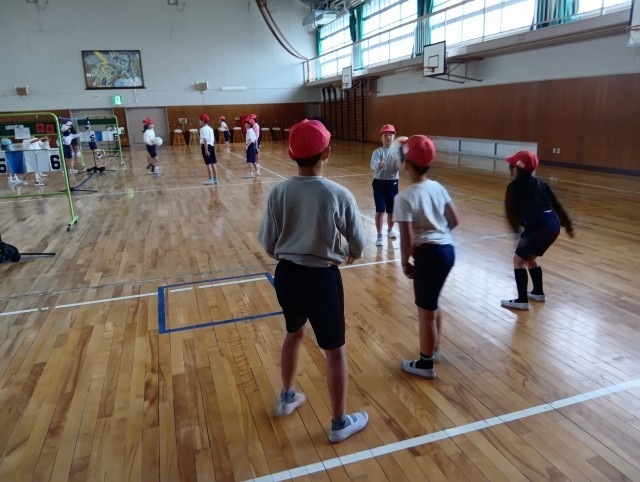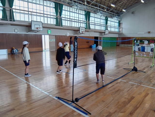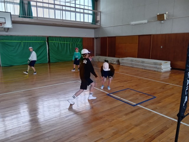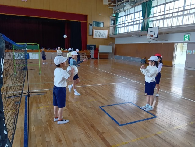 3組はバレーボールをアレンジしたゲームをしていました。作戦を立てて、仲間と連携して取り組んでいました。