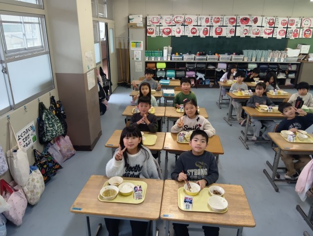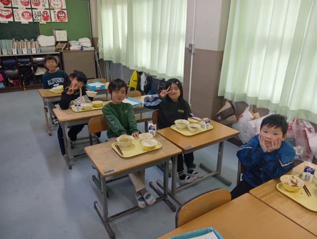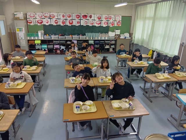 どのクラスも素早く準備を終わらせて、食事の真っ最中でした。まずは3組。