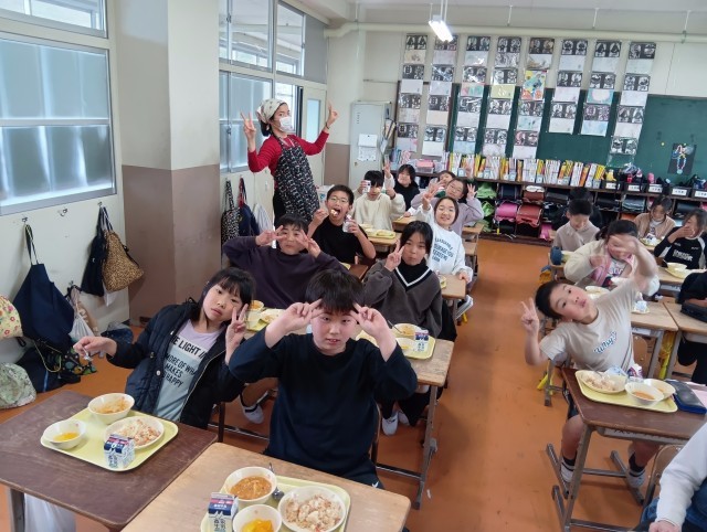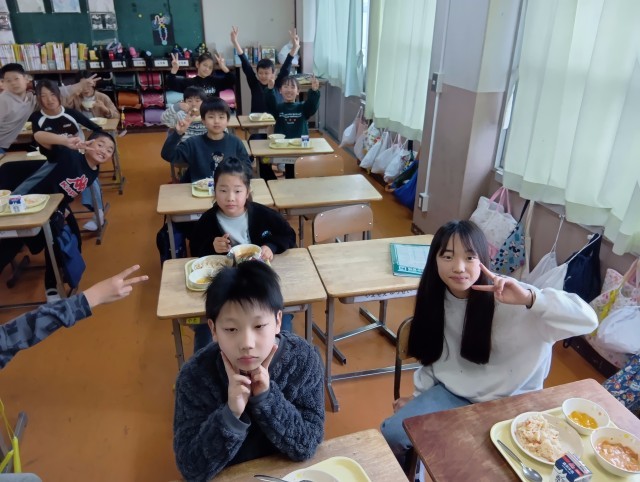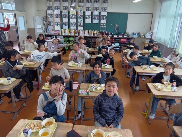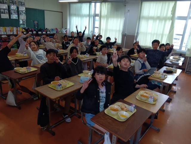 3組は今日は4年生の中でいちばん早く食べ始めていました。直前が体育の授業だったけど元気に食べていました。
