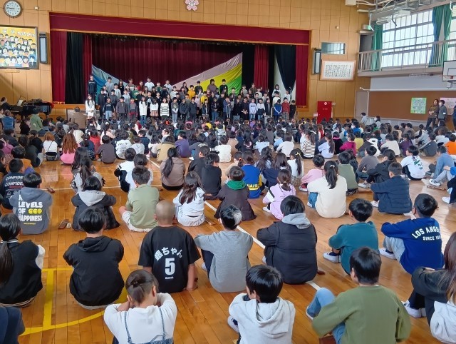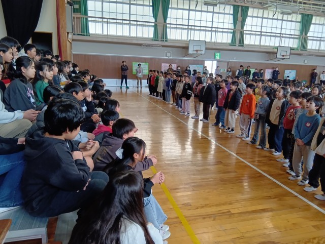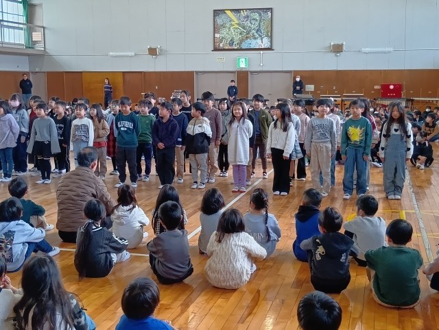 みんなで校歌を歌って、児童会代表のあいさつから始まりました。力強く感謝の気持ちを伝えてくれました。