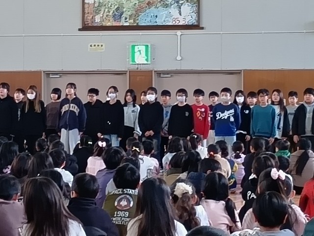 最後には6年生から、お返しの言葉と歌を披露してもらいました。