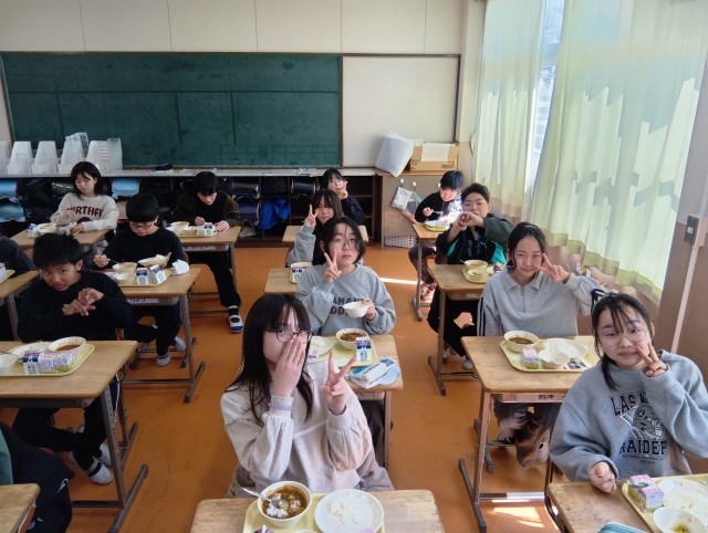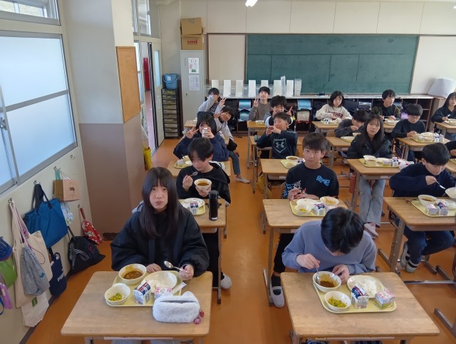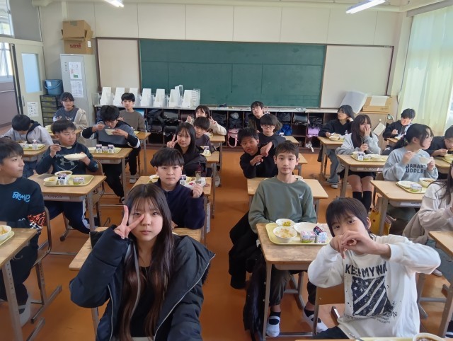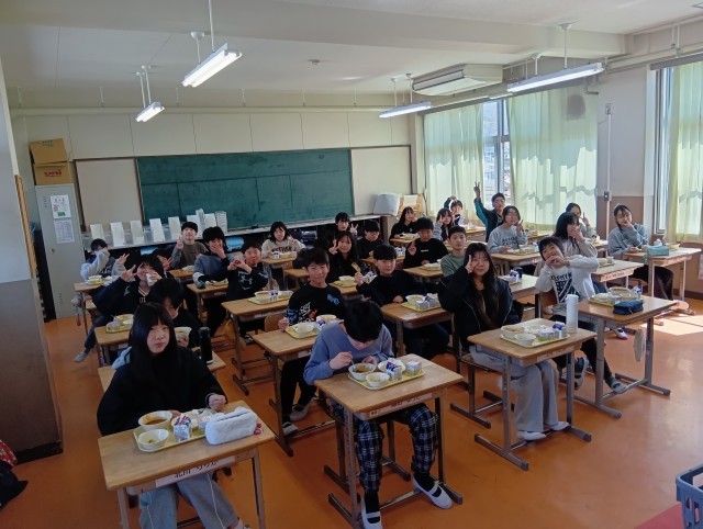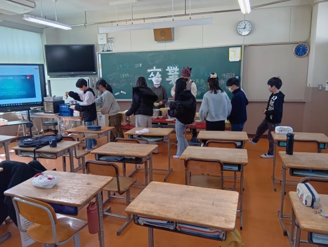 さいごに3組。給食係の子たちが調理員の皆さんにお礼を伝えていました。