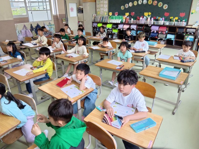 3クラスとも今日は鉛筆の持ち方と線をまっすぐに書く練習をしていました。