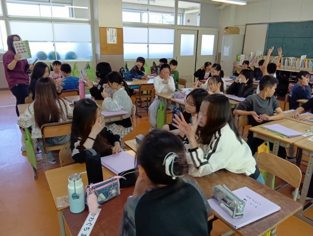 3組は家庭科。さっそくクイズで盛り上がっていました。