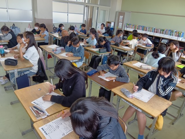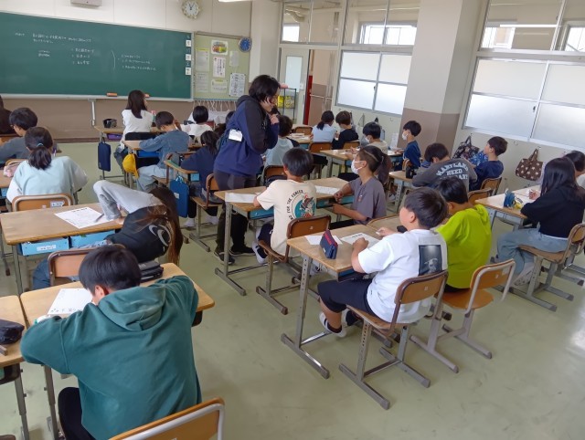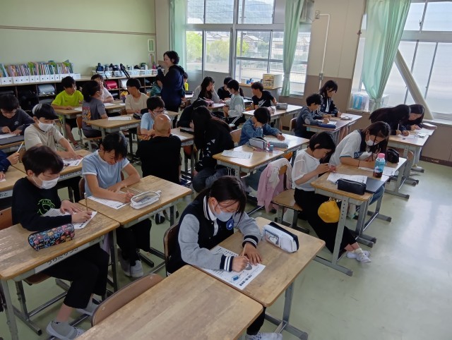 1組は図工。自己紹介カードに絵を描いたり、紹介内容を考えていたり、和やかに過ごしていました。