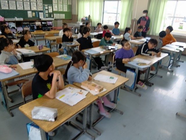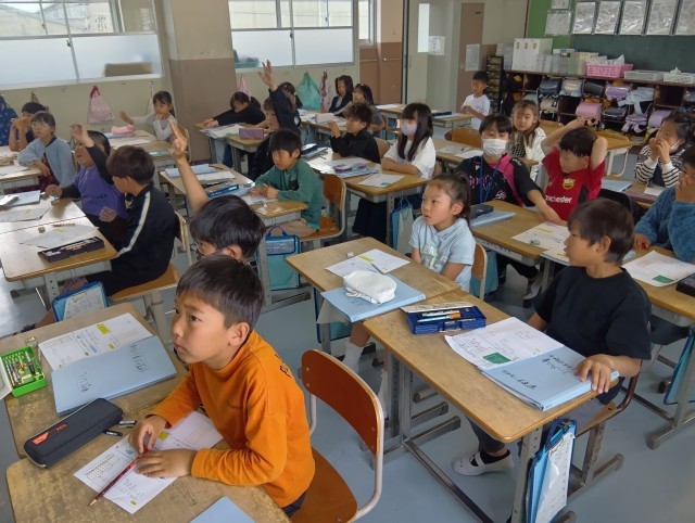 3組は算数。ふたけた✕ひとけたのかけ算の解き方を考えていました。一人ひとり違った解き方を考えるのですが、堂々と発表していてよかったです。
