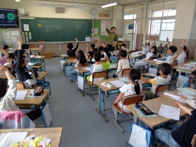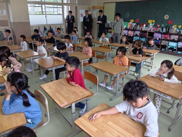 今日は、大東市教育委員会の教育長が学校のようすを見に来られました。