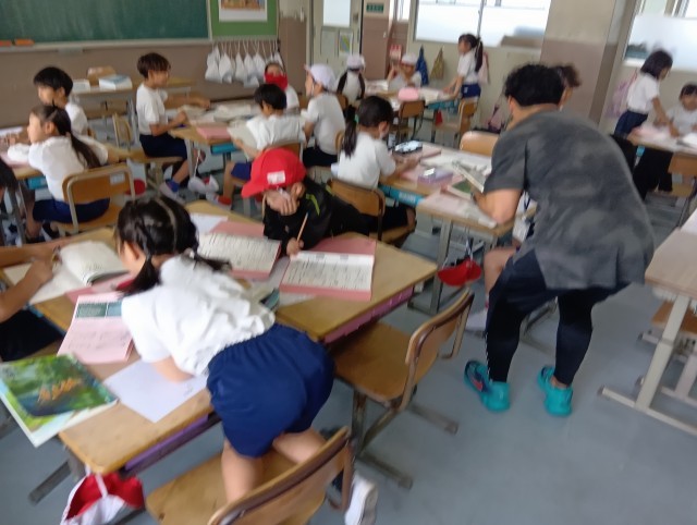 子どもたちのようすを見ていただいて、元気に過ごし、じぶんから進んで行動し、発表や友だちとの言葉のやりとりがよくできているとほめていただきました。
