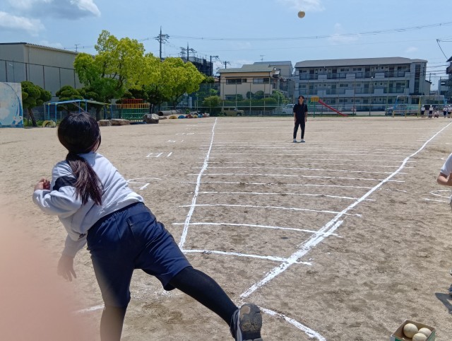 雨で運動場が使えなかったためできずにいた体力テストの遠投を行いました。こちらも身体の大きさとか力というより身体の使い方が上手だと遠くまで投げられるみたいです。