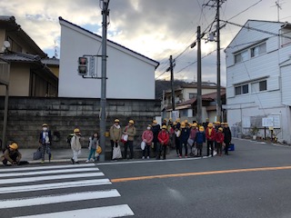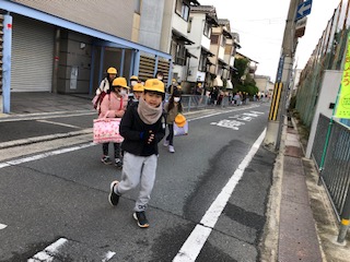 週明けの月曜日、子どもたちは登校はんできちんと並んで来ています。強風の予報でしたが、朝は穏やかです。