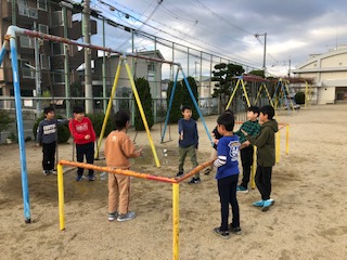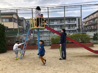 今日は、2年生がすべり台で遊び、3年生がブランコでじゃんけんをしてます。和やかな場面です♪