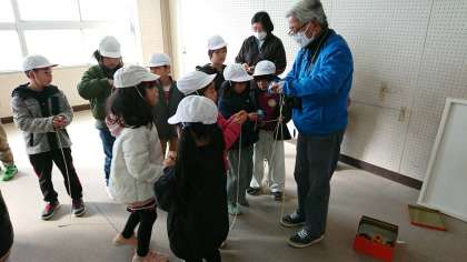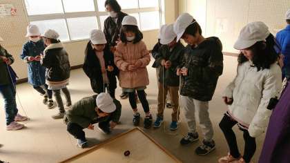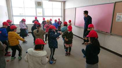 1年生は今日、野崎青少年教育センターへ行きました。昔遊びを教えてもらいます。学校でも練習してみましたが、上手にコマ回しできるようになったかな?