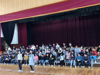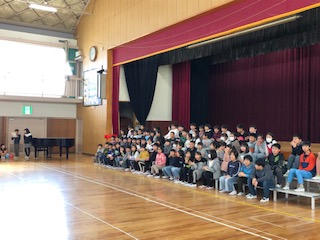 4年生は2分の1成人式を体育館で行いました。一人一人が自分が社会に出て、やろうと思う仕事を発表しました。たくさんの保護者を前に、長い文も覚えて言いました。校長より2分の1成人式証書を各学級の代表に手渡し、最後にお家の方への感謝の言葉があり、終えました♪