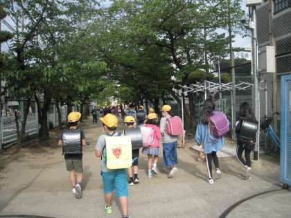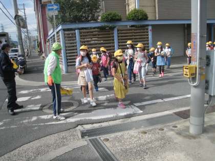 今日は朝、空いっぱいに羊雲がひろがっていました。分散登校3日目は寺川・寺川住宅の子どもたちの初登校日です。ここでも見守り隊の方が信号の所に立ってくださっていました。ありがとうございます!