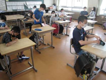 6年生、このクラスも個人面談でフォローとケアの時間をとっています。子どもたちが向かっているのは、リーフメッセージづくり。葉っぱのカードにメッセージを書いてページに飾り貼って行きます♪