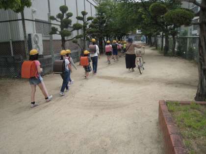並んだ班から帰ります。2回目は並ぶのもとっても早かったです。中垣内・龍間の次の登校は木曜日です。また元気に登校してきてください。