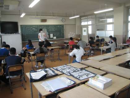 始まる直前の朝の教室です。静かにりんと座っている姿勢が既に「さすが・・」です。この教室にはとても美しい金魚がいました。元気に泳ぎ回り、教室に動きを添えています♪
