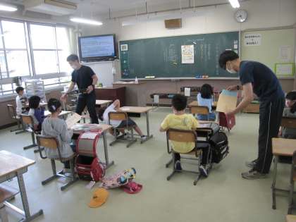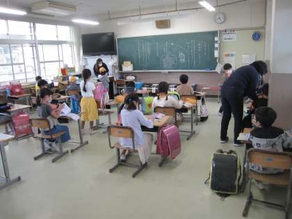 今日は中垣内、龍間の登校日。1、2年の子どもたちの様子です。