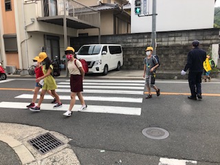 分散登校3日目の最終日、寺川・寺川住宅の子どもたちの登校、朝の様子です。
