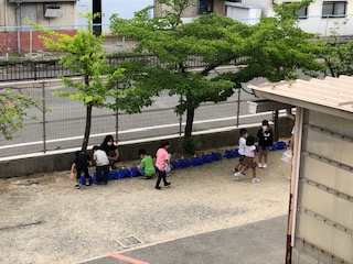 教室にいたはず…のクラスは朝顔の水やりに行っているのが、廊下の窓から見えました♪